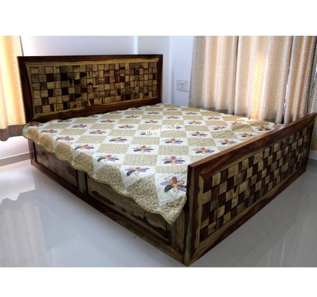 Wooden bed WEAVE bed Queen / King size Bed . Simple, strong and sturdy design with woven headboard creating unique fabric like pattern Crafted in Solid Sheesham wood and finished in Honey / Rich Walnut Dimensions : Mattress size : Queen:78 x 60 Inches | King size : 78×72 inches