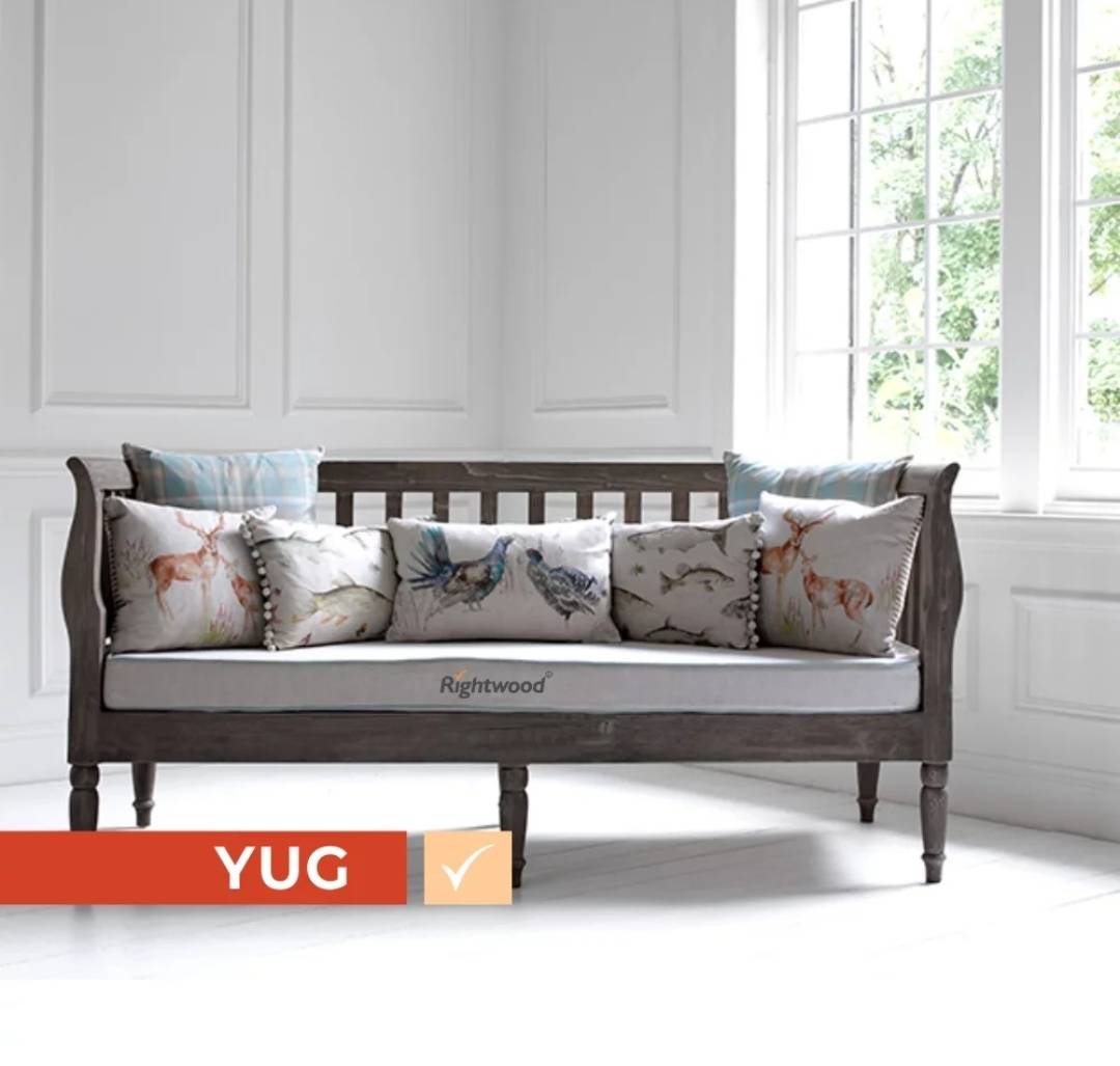 Wooden sofa with turned round legs and strong back support Made in assorted Sheesham wood with best in class polishing This elegant beauty is just an adorable welcome in your living room Dimensions: 3 Seater 180W x 85D x 80 H Cm | 1 seater sofa chair 85W x 85D x 80H cm